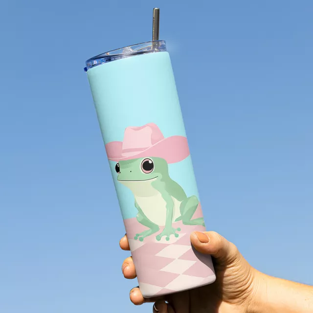 Cowboy Frog 20oz Skinny Tumbler – Funny Frog Travel Mug – Cute Animal Stainless Steel Tumbler