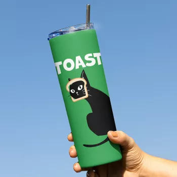 Toast Cat 20oz Skinny Tumbler – Black Cat Travel Mug – Funny Kitten Stainless Steel Tumbler