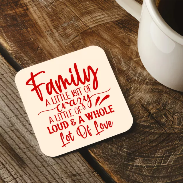 Family A Little Bit Of Crazy Square Coaster 4-Piece Set – Family Gathering Coasters for Drinks – Family Quote Coffee Tea Mug Coasters