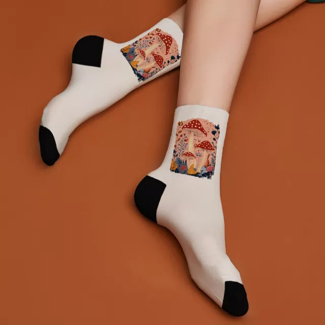 Looking for a way to add some personality to your everyday style? Check out Cottagecore Crew Socks! With a ribbed tube and cushioned bottoms, our socks are sure to make a statement. Plus, they’re super comfortable, so you can wear them all day long. Boho Mushrooms Socks are the perfect pair for you.