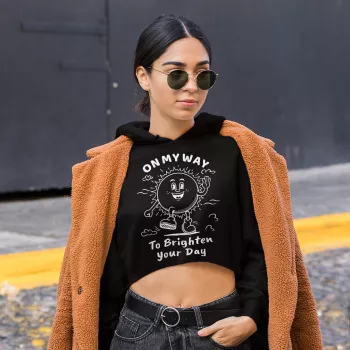 On My Way To Brighten Your Day Women’s Cropped Hoodie – Cool Vibe Hooded Sweatshirt – Vintage Sunshine Super Crop Top Hoodies