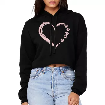 Heart Paw Women’s Cropped Hoodie – Pet Love Hooded Sweatshirt – Cute Paws Print Super Crop Top Hoodies