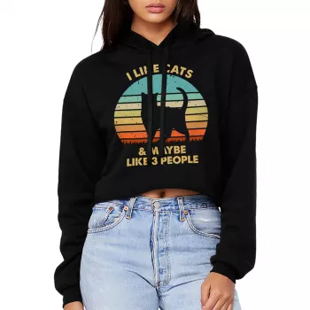 I Like Cats And Maybe Like 3 People Women’s Cropped Hoodie – Cat Lover Hooded Sweatshirt – Cat Quote Super Crop Top Hoodies
