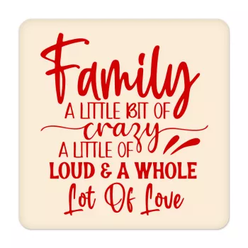 Family A Little Bit Of Crazy Square Coaster 4-Piece Set – Family Gathering Coasters for Drinks – Family Quote Coffee Tea Mug Coasters