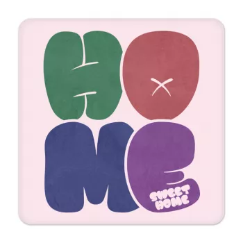 Trendy Typography Home Square Coaster 4-Piece Set – Retro Coasters for Drinks – Funky Aesthetic Coffee Tea Mug Coasters