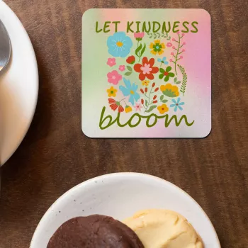 Let Kindness Bloom Square Coaster 4-Piece Set – Retro Flowers Coasters for Drinks – Be Kind Coffee Tea Mug Coasters