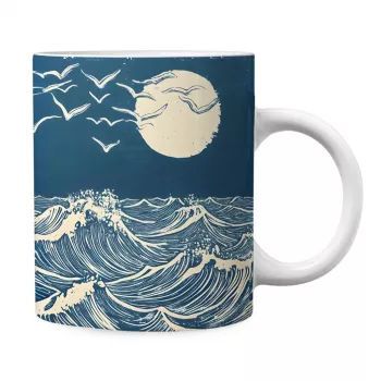 Vintage Sea and Moon 11oz Mug – Sea Waves Ceramic Mug – Full Moon Coffee and Tea Cup