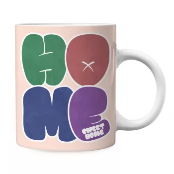 Trendy Typography Home 11oz Mug – Funky Aesthetic Ceramic Mug – Retro Coffee and Tea Cup