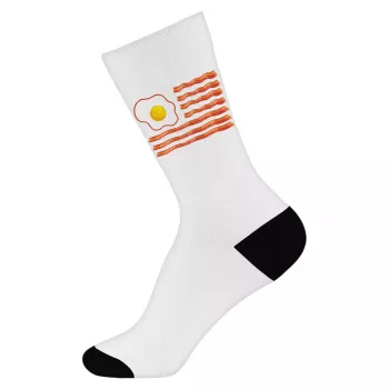 Bacon & Eggs USA Flag Unisex Socks – Funny Food Socks – American Breakfast Crew Socks